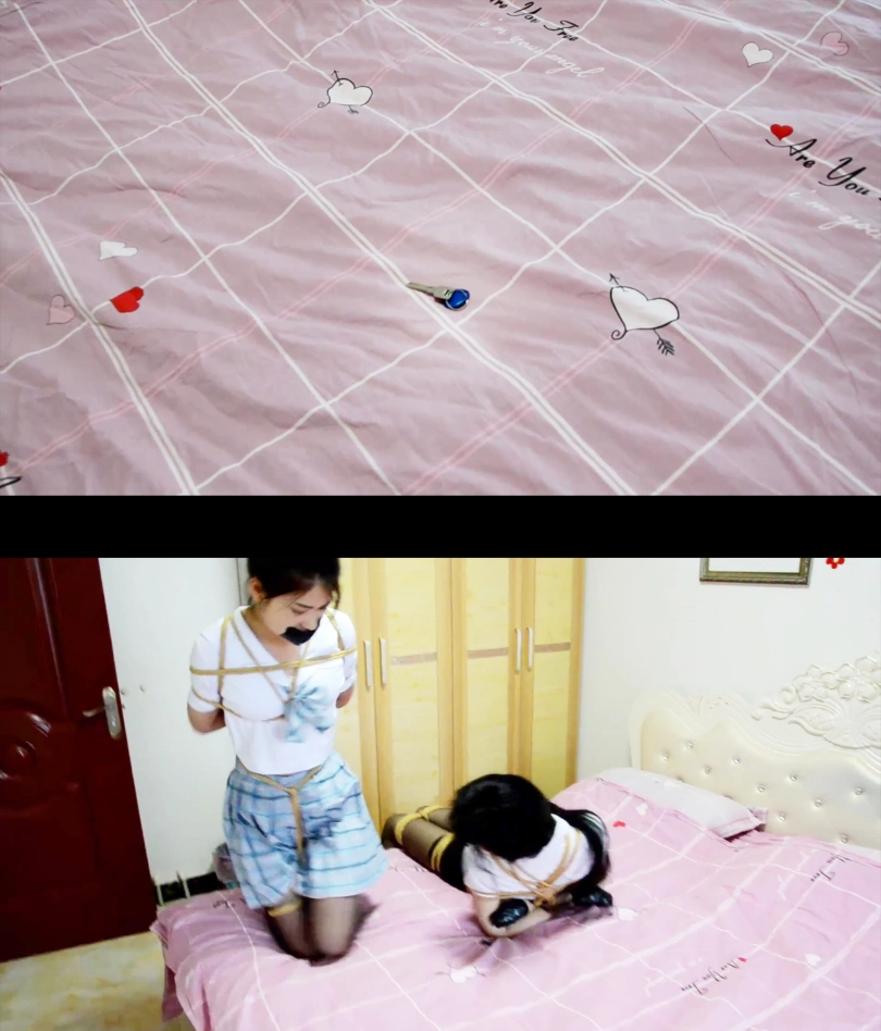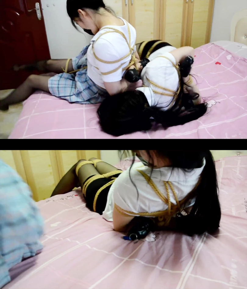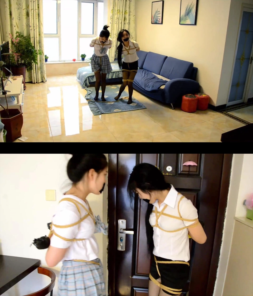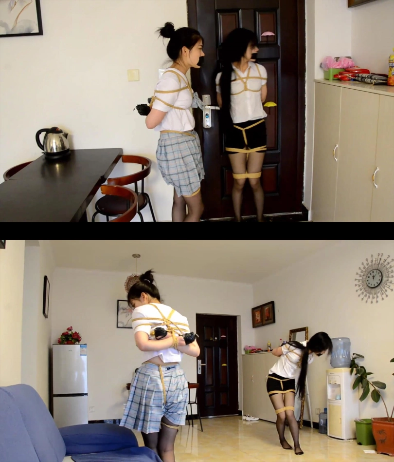 师生被捆绑挣扎,手指也被胶带包裹,性感师生薄黑丝裤袜,2位美女挣扎蠕动不要错过!