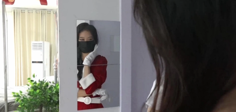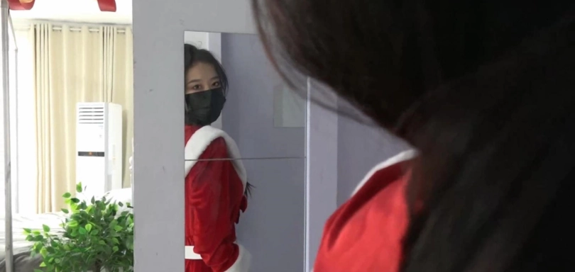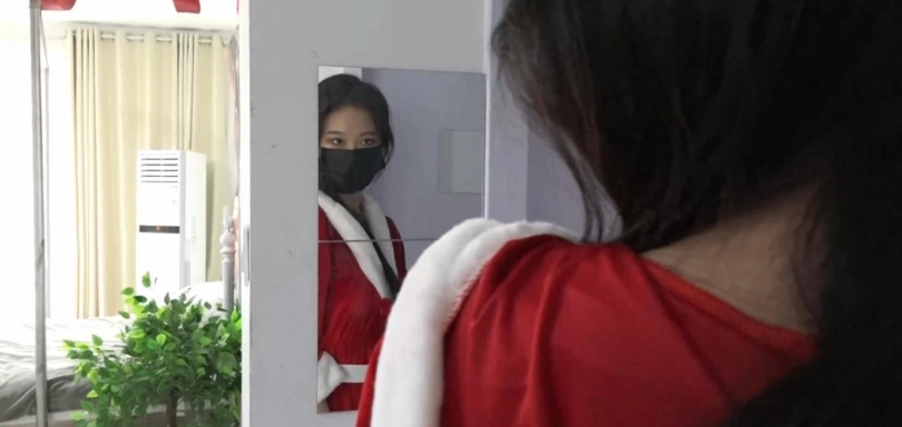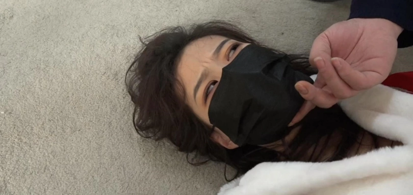 小莉回到家中,穿着圣诞节服装正在镜子旁仔细的试着衣服,越看越觉得满意,随后便躺在了床上,看着那开心的笑容,看来是圣诞节收到了不少的礼物。另一边的眼镜小哥送完快递后回到家中一顿抱怨,不过心中一直一直在想着白天遇到的小莉,于是开始幻想起来。幻想着小莉一觉醒来,却发现自己全身被绳索紧紧的捆绑了起来,正在一个不认识的房间中,旁边还睡着一个自己不认识的男人。小莉心中非常害怕,谁知道这个男人醒来后会对自己做什么,开始想办法自己逃走。于是艰难的起身,但是行动不便的她不小心摔倒在了地上,这时只能慢慢的爬向门口了。在她不断的努力下,也是成功的爬到了门边。在尝试了几次之后,成功的用自己的双脚碰到了门把。不过就在她将要打开房门的时候,眼镜小哥被小莉的动作吵醒,一眼就看到了躺在地上的小莉,眼镜小哥一脸茫然,自己家中怎么会有一个被绳索紧紧捆绑起来的女人,而且看着怎么有些面熟~