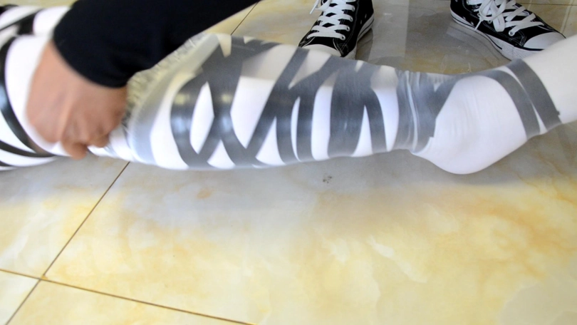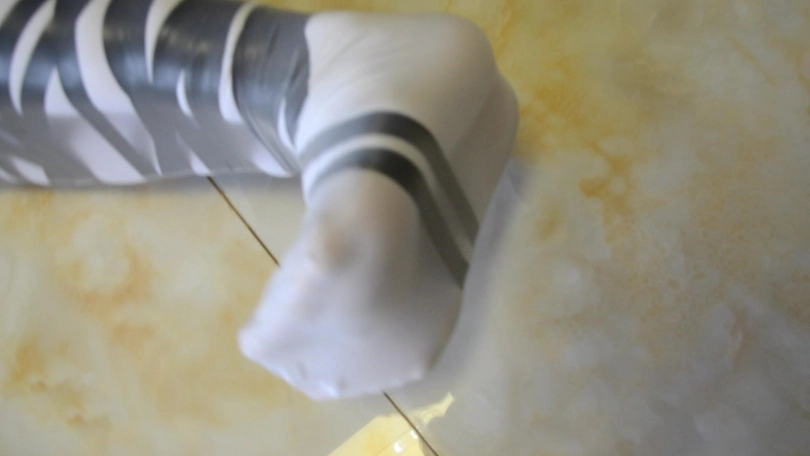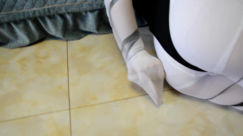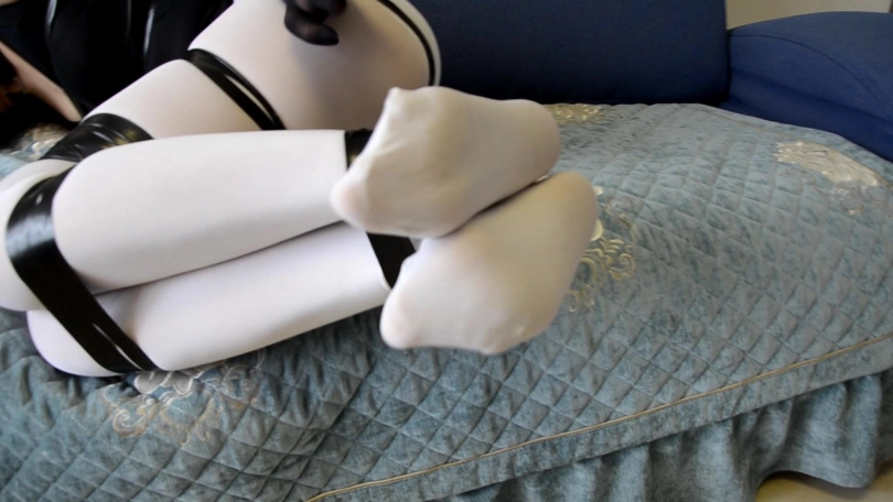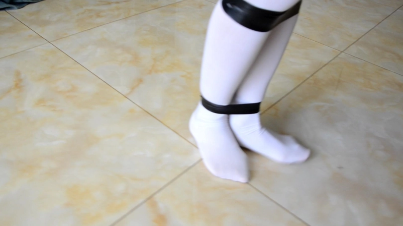 › 【逍遥】《密集白丝缚02》白丝裤袜和白丝长手套 套上白丝长筒袜包裹 黑丝手套固定捆绑艰难蠕动前行