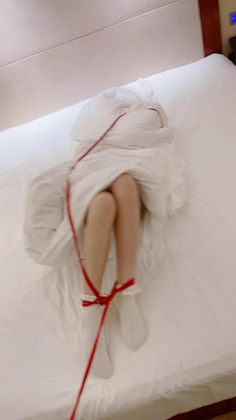 场景1:洛丽塔Lolita软妹风格的服饰+蕾丝花边短袜,用棉被完全包裹全包后用绳子缠绕,只有一双白袜小脚露出在棉被外,肆意挣扎。