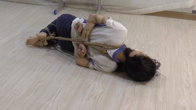 清醒过来的小A发现自己已经被捆绑起来了,全身上下都被捆的紧紧的。