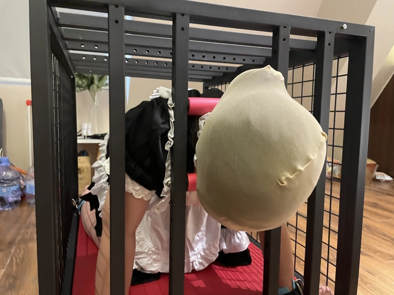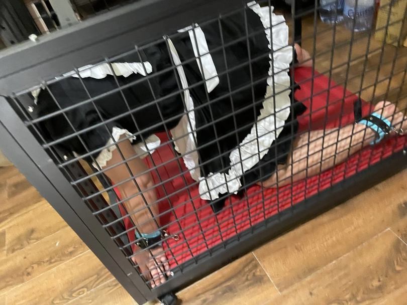 刚好笼子到了,就把她禁锢里面,又是强高又是炮j口jiao