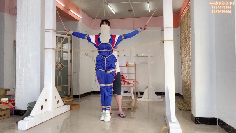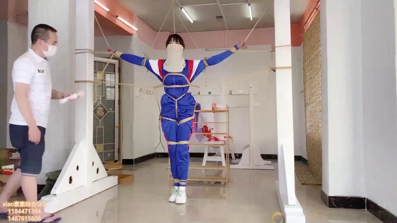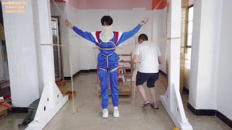 第四集:xiao素素被司机拉到tj室就行tj,让素素张开双手固定在上面 然后拉高固定住让小素素动弹不了,然后全身上下10道绳索实行 完全不能动,并且所有的绳子都相互拉扯,放进遥控td,TJ GC 所有的冲击合并在一起交加着。