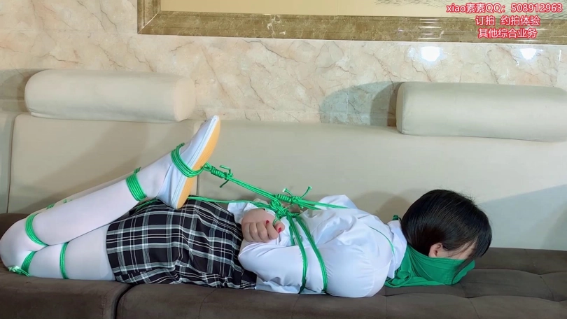 【xiao素素】白丝格子群白衬衣,绿色面纱绿色绳子驷马捆绑挣扎