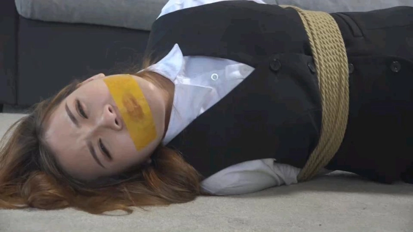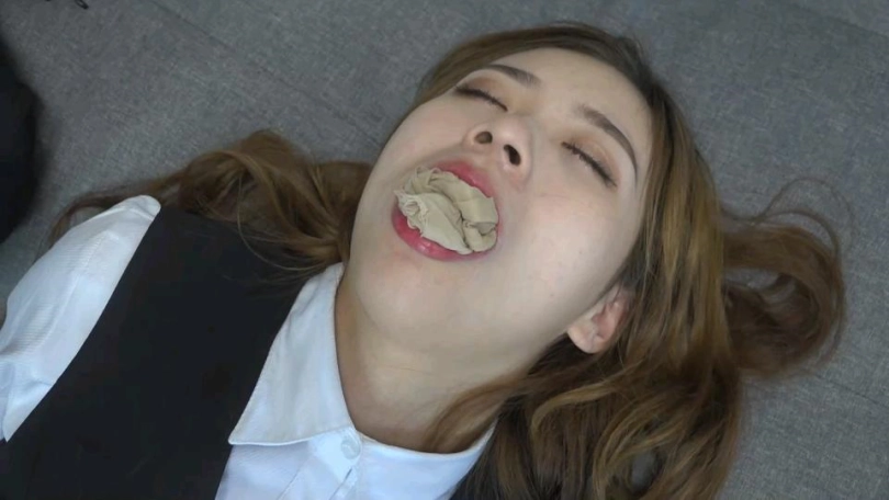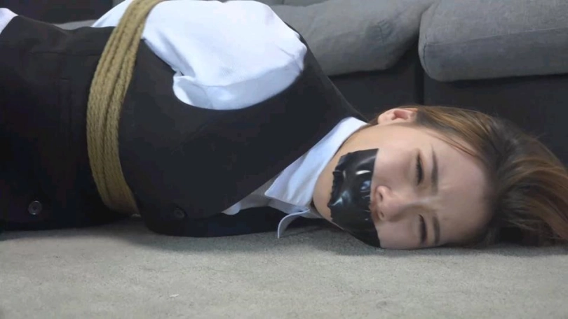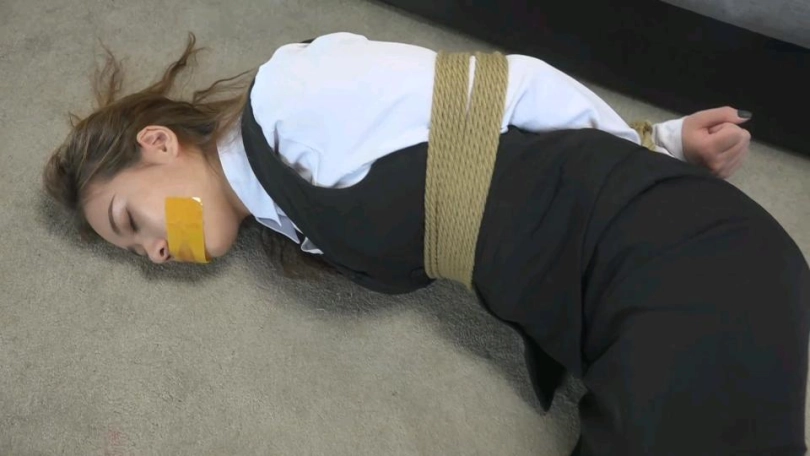 美女依依被迷晕绑架,反绑手脚后胶带封嘴,醒来后各种姿势挣扎,被绑匪发现后毛巾捂嘴迷晕,黑色胶带黄色胶带透明胶带轮流封嘴,丝袜塞嘴,挣扎特写镜头很多。