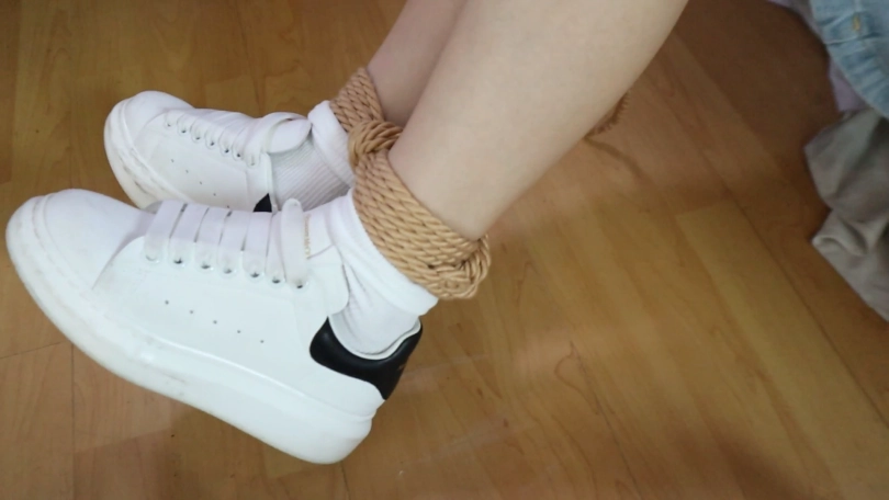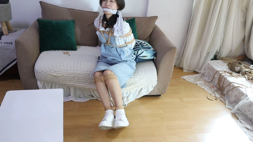 姐姐被绑的结结实实的来回翻动也没办法挣脱层层束缚,