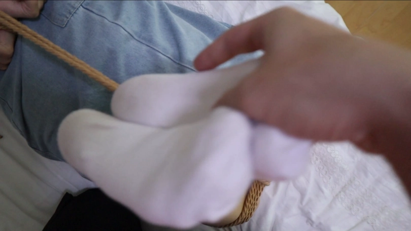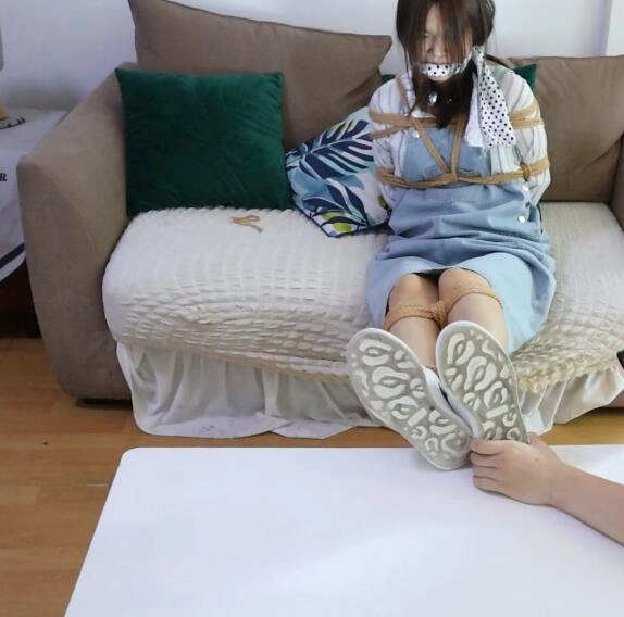 可是腿和脚被死死的绑住,怎么都挣扎不开,挠一挠姐姐的棉袜小脚立马就开始咯咯咯的笑了,