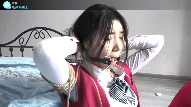 两美女被面对面绑了起来,带着口环不住的流口水,歹徒逼问了密码的下落后长扬而去,两美女丝袜脚互解绳子。