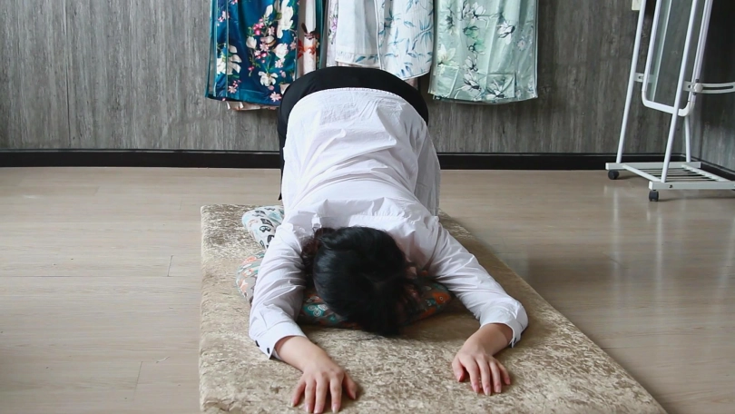的柔韧性很棒的女孩,五花大绑起来还是很漂亮的,胳膊可以反扭的很高