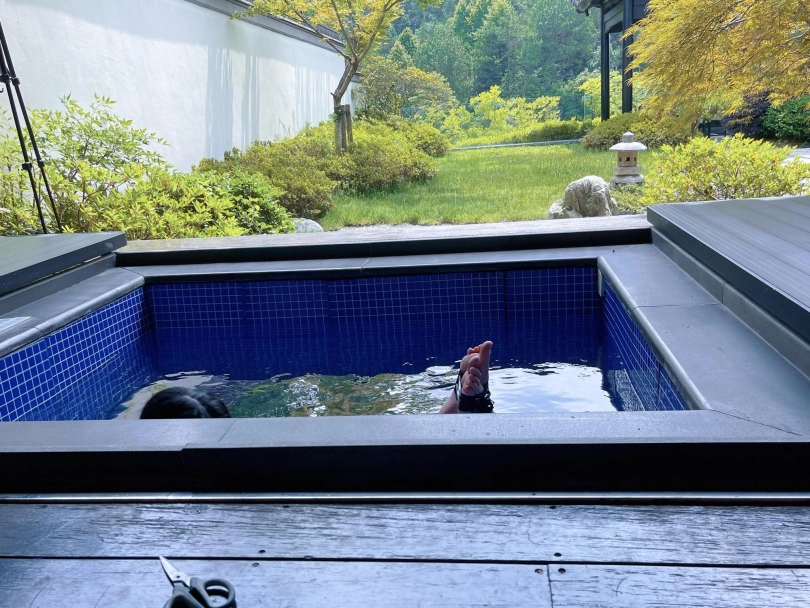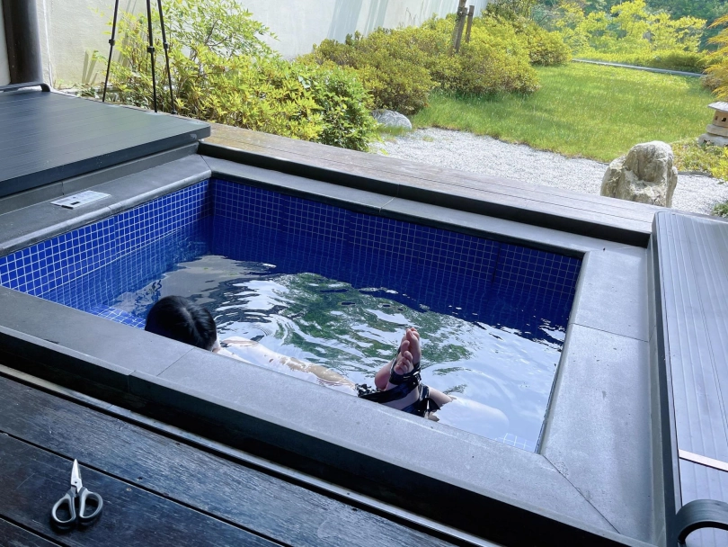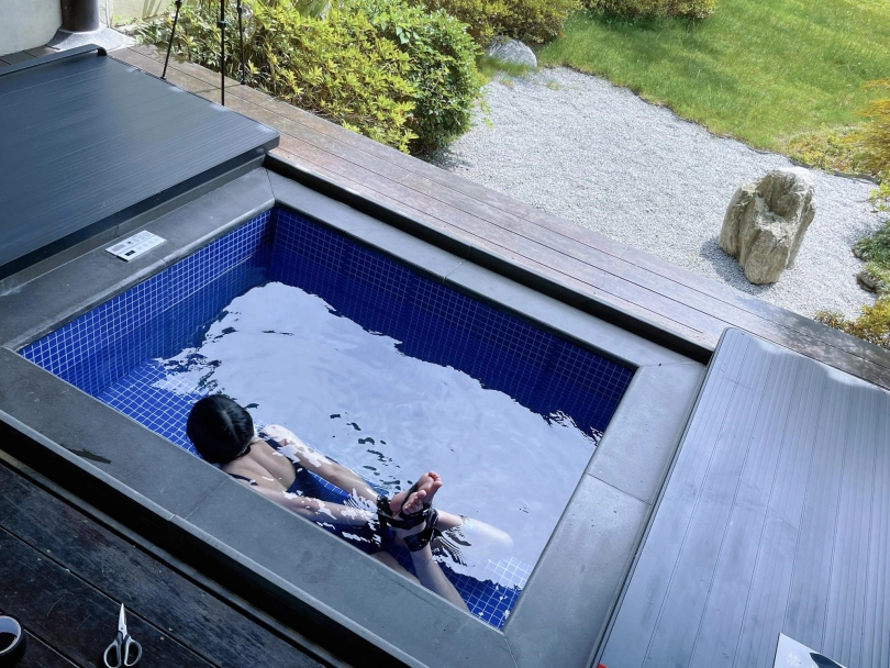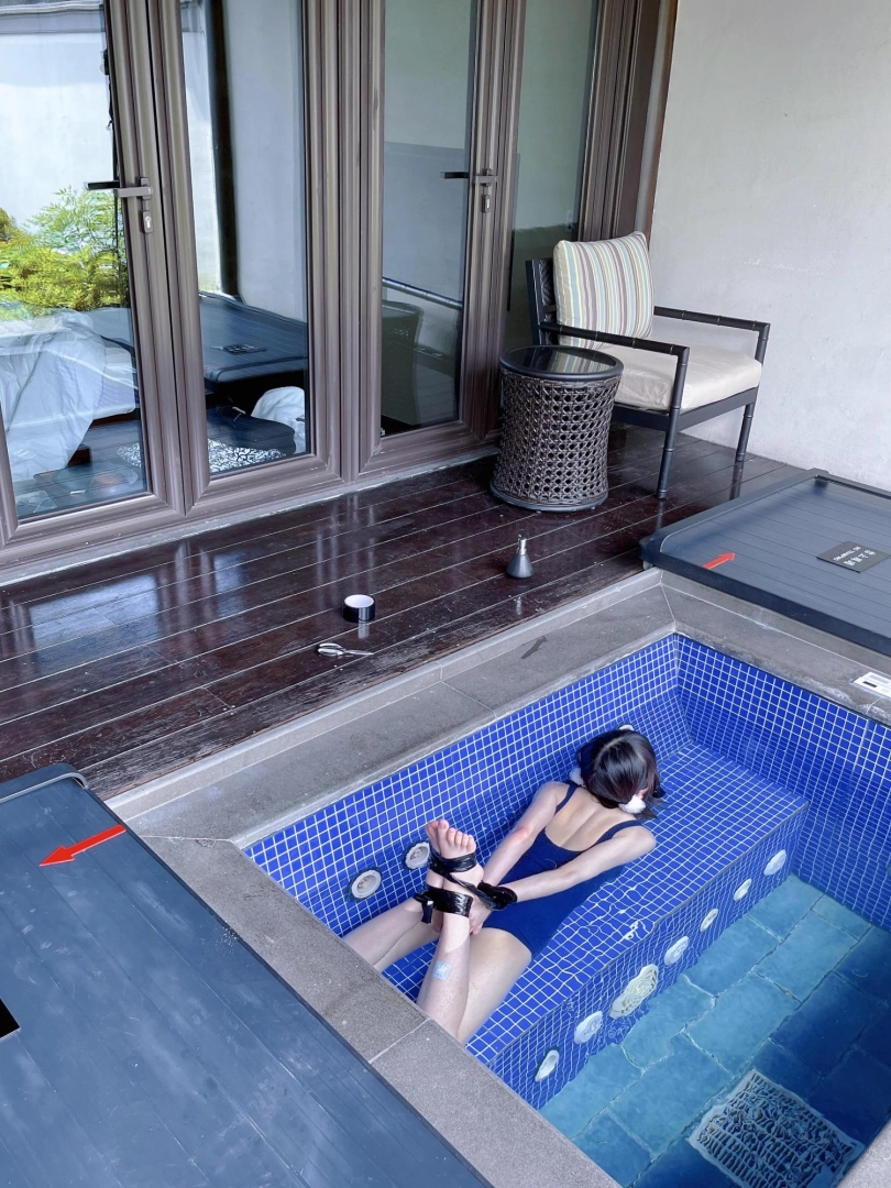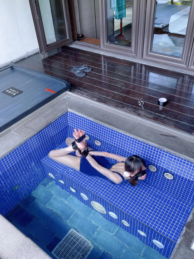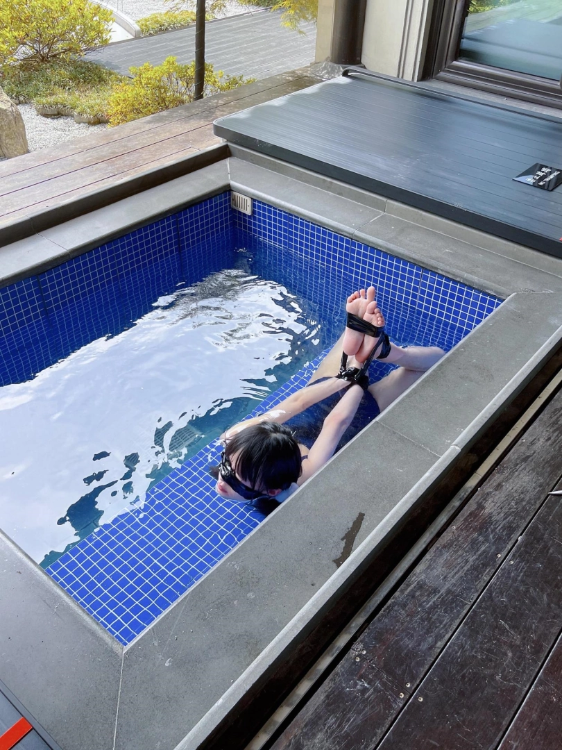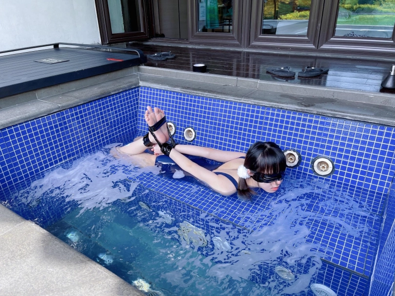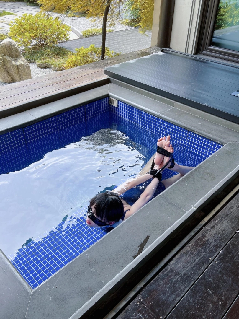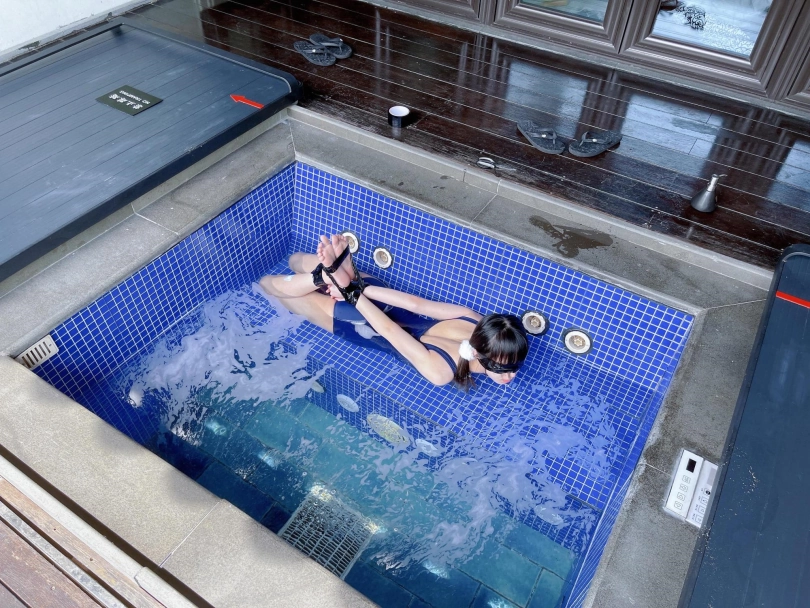谁能想到,泡池盖子下面是一个娇小可爱的双马尾死库水美少女被驷马绑住呢~