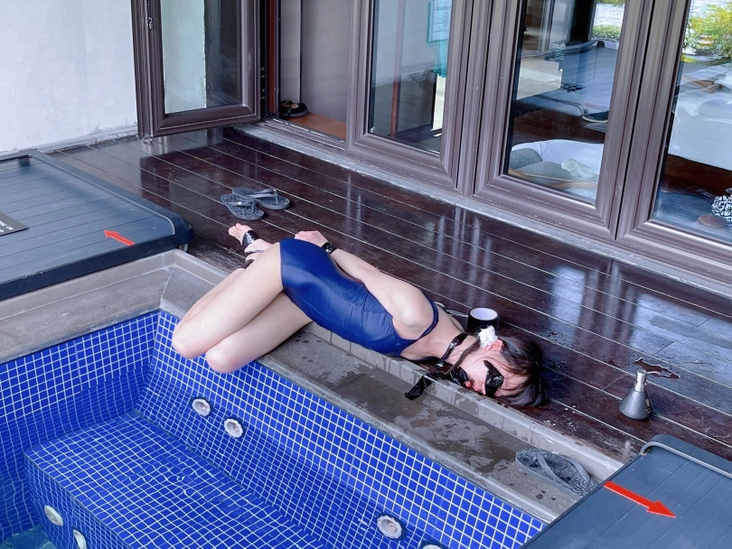 在驷马拘束下,茶茶只能看着水位线满满的上升,直到没过茶茶的口鼻才停止——在这个姿势下,茶茶只能在驷马姿势下拼尽全力的抬头才能不被呛到。