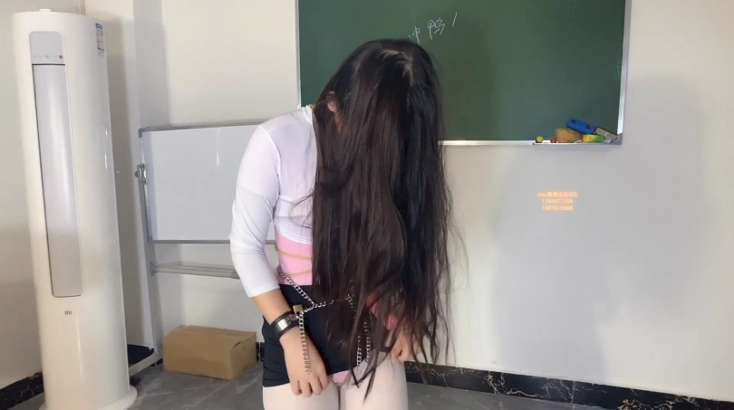 于是老师惩罚素素 带着拷子去 自己家,一路上素素 要去超市买东西。要陌生的老师老板绑头发,开td开关也要在 室外走动