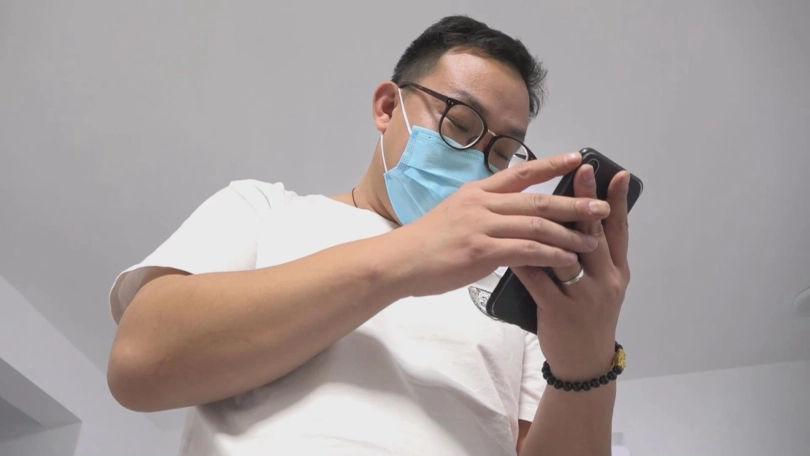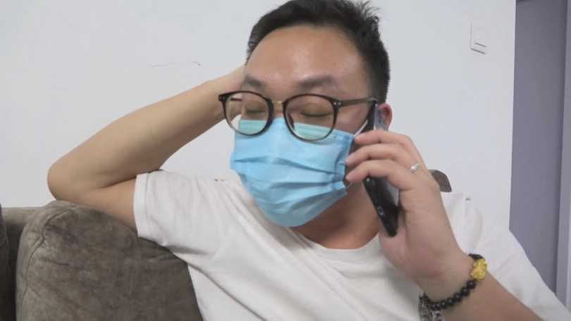 正在口罩男拍的开心的时候,他的手机响了,口罩男很不高兴的去里屋接电话了。