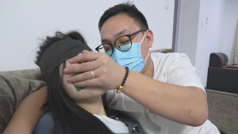 口罩男看差不多了,松开手,妹妹猛的用鼻子使劲呼吸,剧烈的呼吸,使妹妹的胸部剧烈起伏起来,让口罩男觉得妹妹真是个漂亮胚子。想好好戏弄她一下,口罩男就脱了妹妹的鞋开始挠脚心。