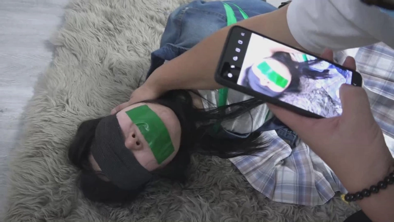 说着男人撕开了嘴上胶带,眼睛上的没动,妹妹平复了一下情绪,说道:你要干什么,对我姐姐做什么,休想!