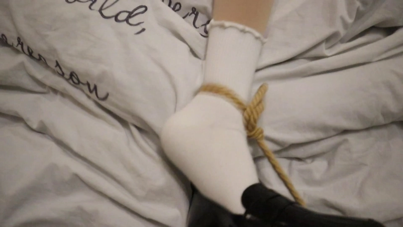 干脆利落的短发温柔一刀的JK短花边白棉袜与亮黑皮鞋 大字型绑床