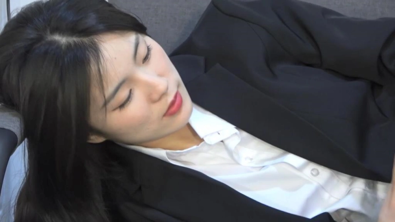 服装为小西装,白衬衫,肉色丝袜。