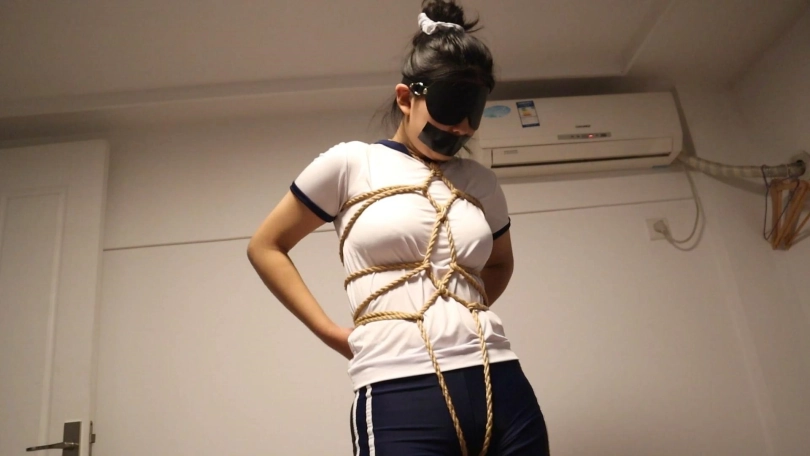 【荷约】少女D的体操服受绑,白丝袜体操龟甲缚楚楚可怜的跪在地上,白棉袜体操花样驷马缚绑在床上