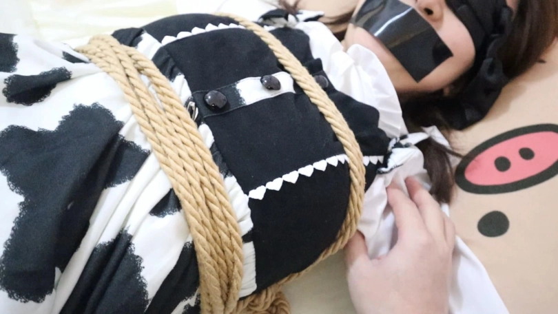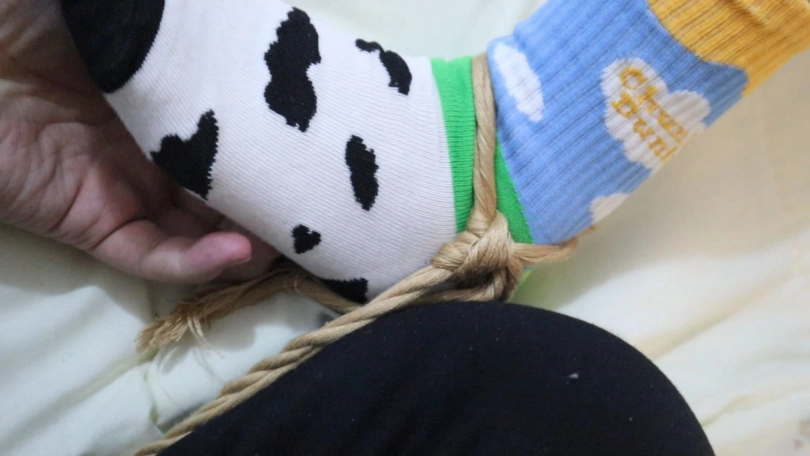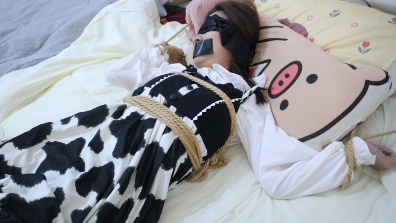 一边是大字绑四肢,一边又是背绑双脚绑在一起又绑在床脚做固定,这下你肯定逃不了啦,