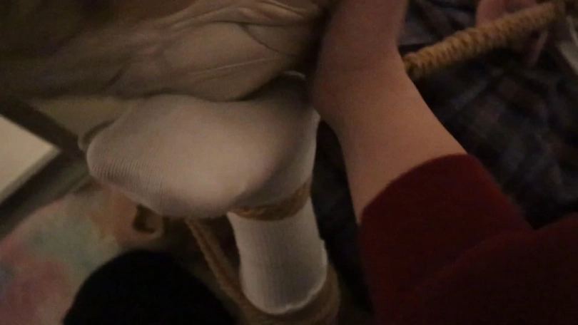 脱下运动鞋露出白棉袜把玩E小姐的时候还是没忍住