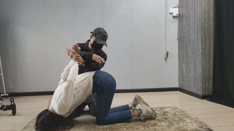 【美束映画】笑容甜美的妹子,柔韧性是真的棒,跪趴在地上捆起来,这次让她尝试一下紧缚的感觉。