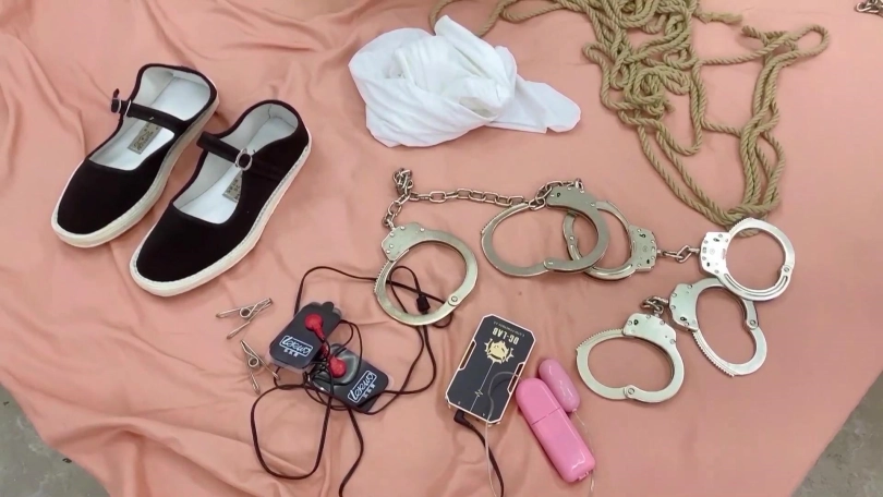 佳佳是一位舞者,被老师tj,手上脚上戴着镣铐,逼着下跪,自己用按摩木奉震动,发出一阵阵呻呤。
