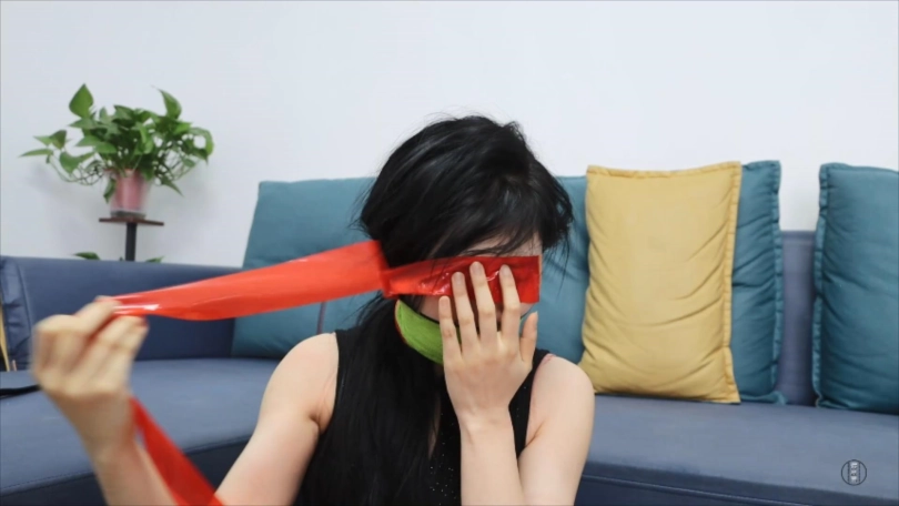 “还敢瞪我?!”愤怒的柳洋干脆用红色胶带和草绿色自粘绷带将吴晗眼睛一圈圈缠绕封起来。