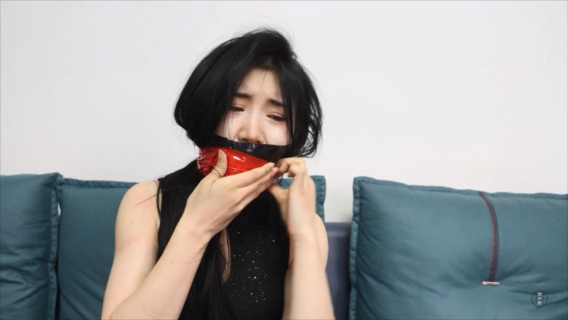 “少废话!谁让你刚才那么折磨我!现在恶有恶报,轮到你了!”柳洋捏住吴晗鼻子迫使她嘴大张,而后把自己两只深肉色原味锦纶丝袜一只只塞入吴晗大张的嘴里,堵得严严实实,塞完后还使劲用手按了几下不让吴晗吐出来,令吴晗再次痛苦不堪,直翻白眼。之后柳洋如法炮制,用黑色电工胶布剪下5张封在吴晗嘴外,再用红色胶带和草绿色自粘绷带来回缠绕多圈,把吴晗的嘴封堵得严严实实。