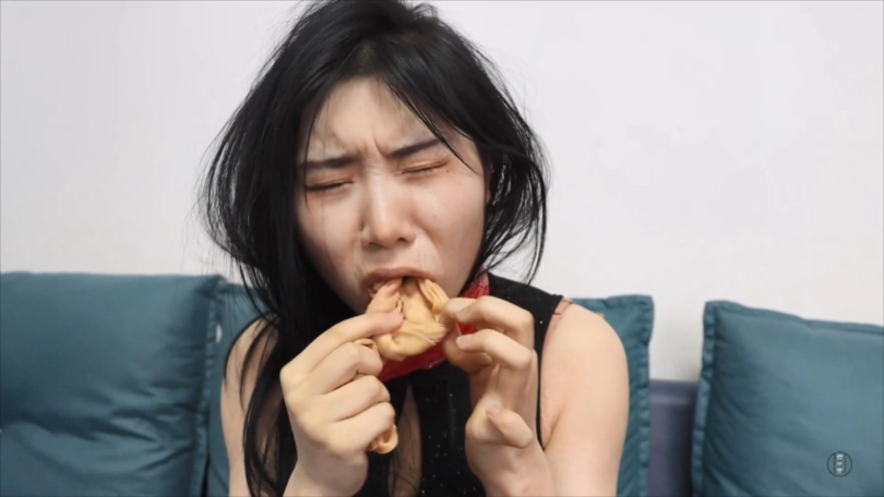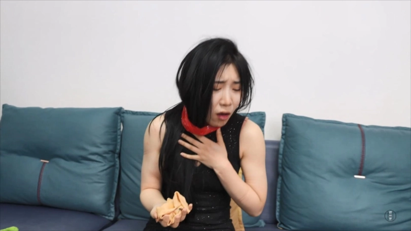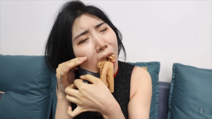 柳洋撕掉吴晗嘴外5张黑色电工胶布,而后拽出了她口中塞的两只咖色臭锦纶丝袜。