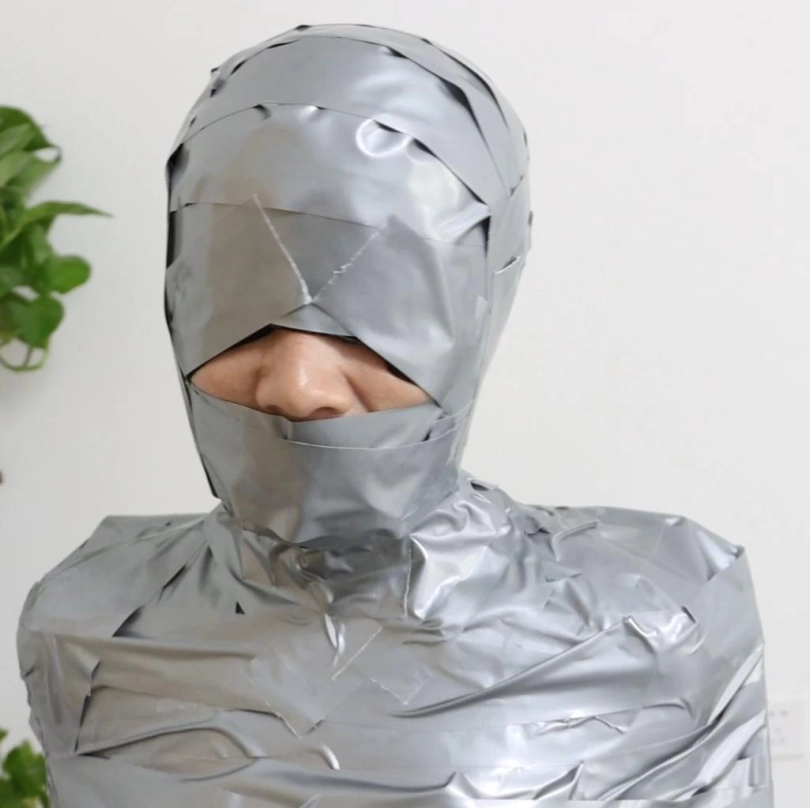 歹徒看到想逃跑的柳洋,便把她抓住并重新绑了起来,装进麻袋立马绑架走了,被绑架后的柳洋,被歹徒以胶带捆绑进行惩罚,并全包了起来。