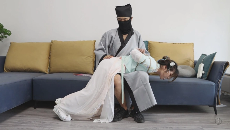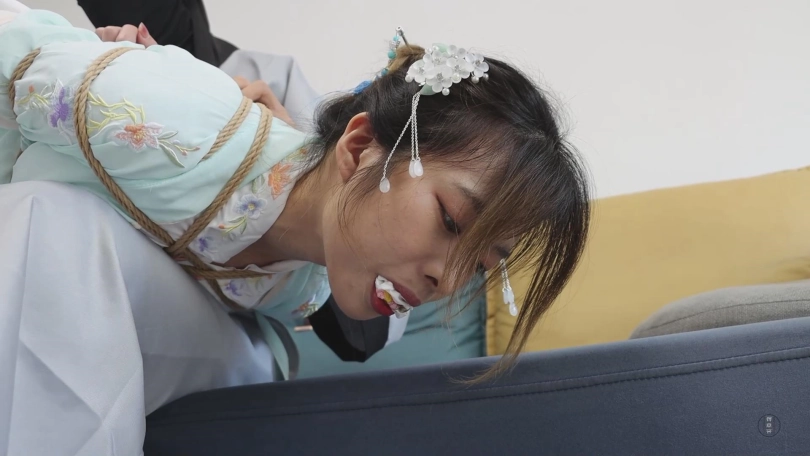 然而,云瑶却自发的跪在了巩生面前,任由巩生想去搀扶也没有起身,她已经下定决心尊巩生为夫君,自古以来妻子顺从夫君便是理所当然,只是云瑶并非被胁迫,而是因为深爱着巩生。巩生将云瑶的小扇放在不远处,询问云瑶能否将小扇用口叼回,云瑶轻声应允后便跪着走到了小扇附近,用朱唇含住扇柄,艰难的向巩生的方向跪行。