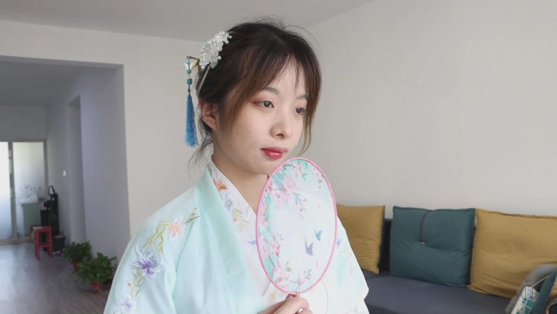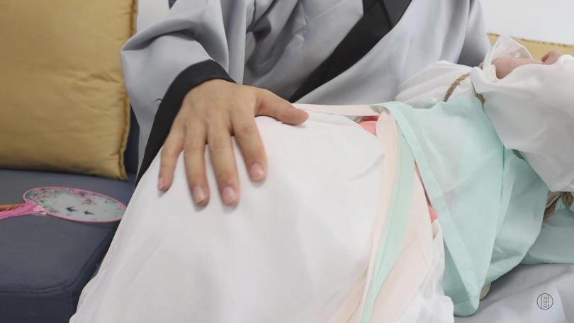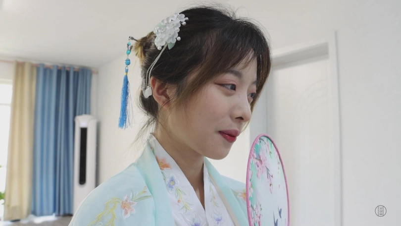对于一个久居深闺的女子来说,这似乎太过于苛刻了,于是小扇在途中掉落在地上,待云瑶想要弯腰再次用口叼住扇柄时,巩生制止了她,他将小扇拾起后用手帕擦干净扇柄,并将扇柄再次含在云瑶的双唇之间。巩生此举也意味着他并非是个只顾自己的男子,他展现出了能够与云瑶互相帮扶的决心,当接过云瑶的小扇,云瑶幸福的伏在巩生的腿边,享受着巩生对她奖赏般的摸头。