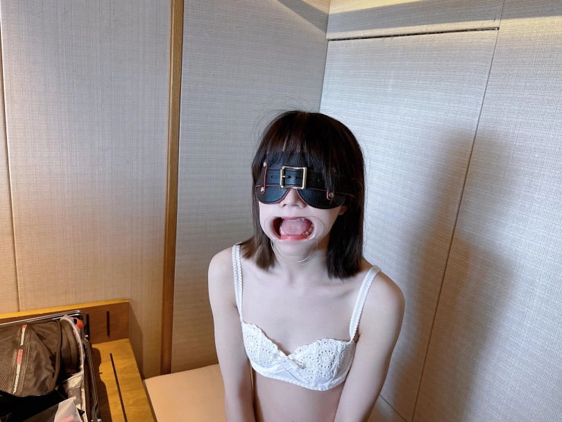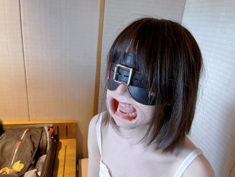 为了增加羞耻感,还带上了颜面破坏的一次性扩口器,用手指玩弄茶茶的舌头和口腔内壁,把茶茶羞的口水流的捯饬都是。并且还要让茶茶戴着扩口器吃香蕉...