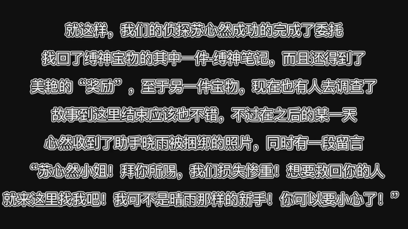 缚之轨迹侦探篇的剧情完结啦!本来打算开一个新的系列,但是实话实说启用了新人小姐姐,中间剧情台词部分确实有点生硬,所以决定在之后写个完善点的最终剧本!不过挣扎和玩弄的部分都相当精彩!