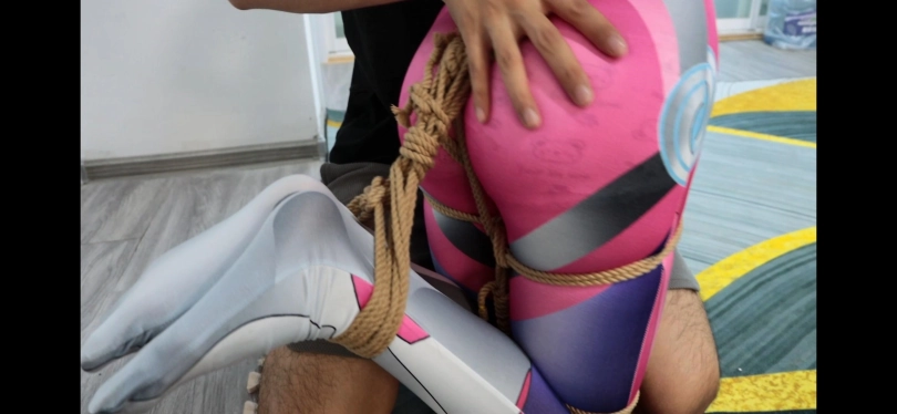 第三幕,坏人想看看全身紧缚加严厉控制,于是将雨晨结结实实绑了起来,连头发也捆上接着和双脚连接,这让她头,手,脚连成一块动弹不得,只能发出屈辱的呜呜。