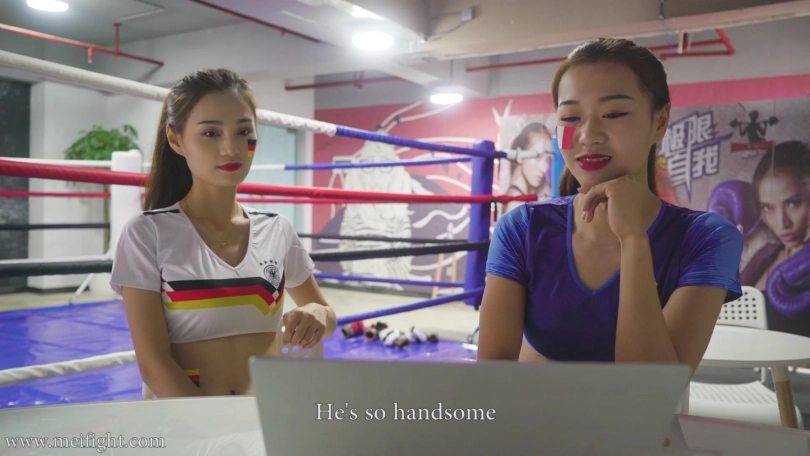 Ziyue and Ling were watching a football match. Their favorite teams were different, so they had an argument. They finally decided to have a boxing match to vent their dissatisfaction with each other.