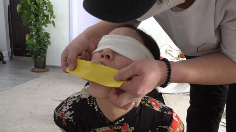 组织人员恼羞成怒,往二人嘴中塞入堵嘴的丝袜,用胶带封嘴.