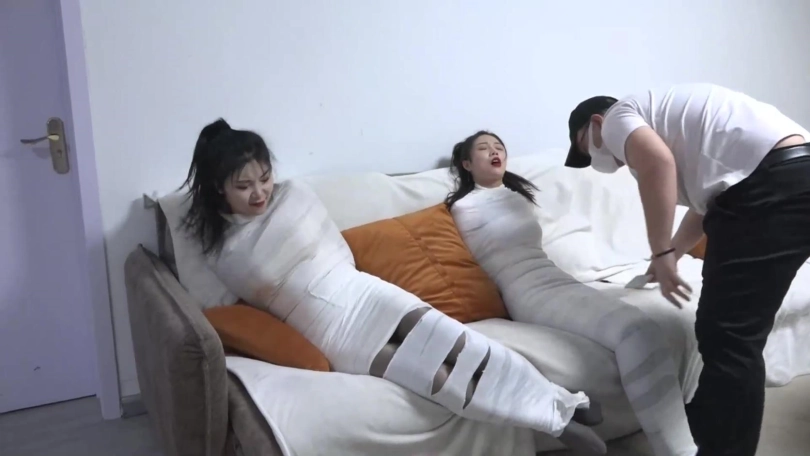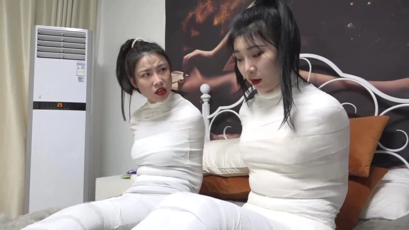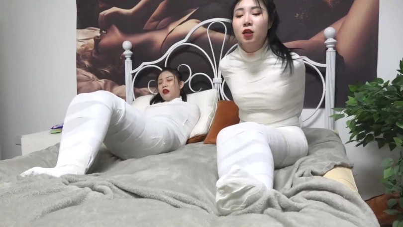 › 【逍遥】吴晗+柳洋《木乃伊女宠03》双人木乃伊人茧 洁白木乃伊蠕动挣扎 2位御姐互动有趣