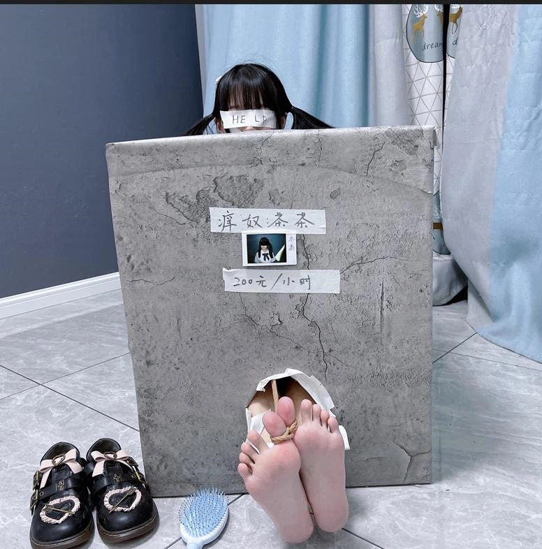 “这里有一个志愿服务,茶茶小姐想参加吗?我们会把茶茶小姐封印在水泥中只露出头和脚,让路人随意把玩哦~”