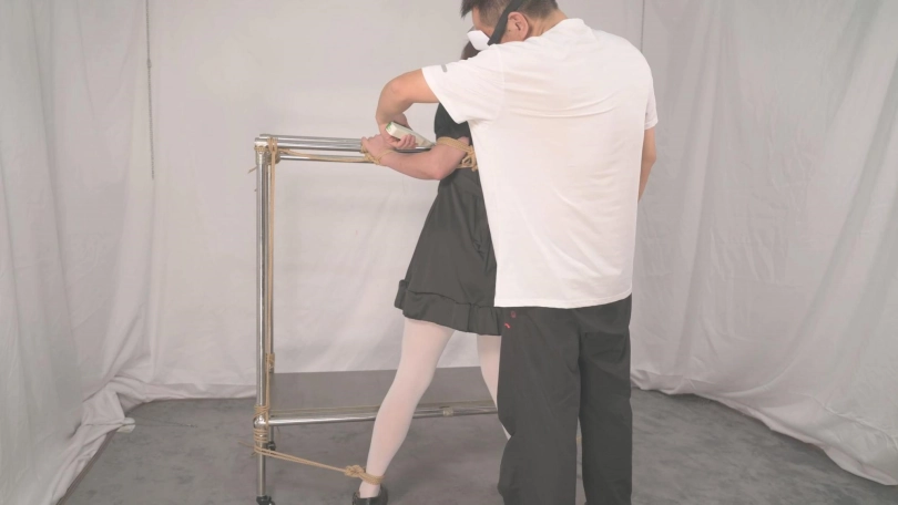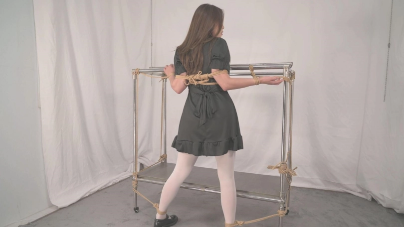 雪碧有个习惯,她会偷偷观察捆住她绳子的走向,然后找机会解开偷懒,还会不时回头看有没有注意到她,这正中我的下怀,她的侧脸是很美滴,每次偷瞄都给她记录下来。这次她挣扎扭动的也很卖力气,还像个小姑娘一样挣脱不开来回跺脚,配上白丝,让整个捆好后的画面极度舒适。雪碧那委屈的声音是最爱听的,这次给她搞个强制拥抱TK,同时也用上了电击器,伤害性不大,震慑性极强,搞得她惊叫连连,无助扭动挣扎。另外还有个有意思的NG镜头,放在了最后。