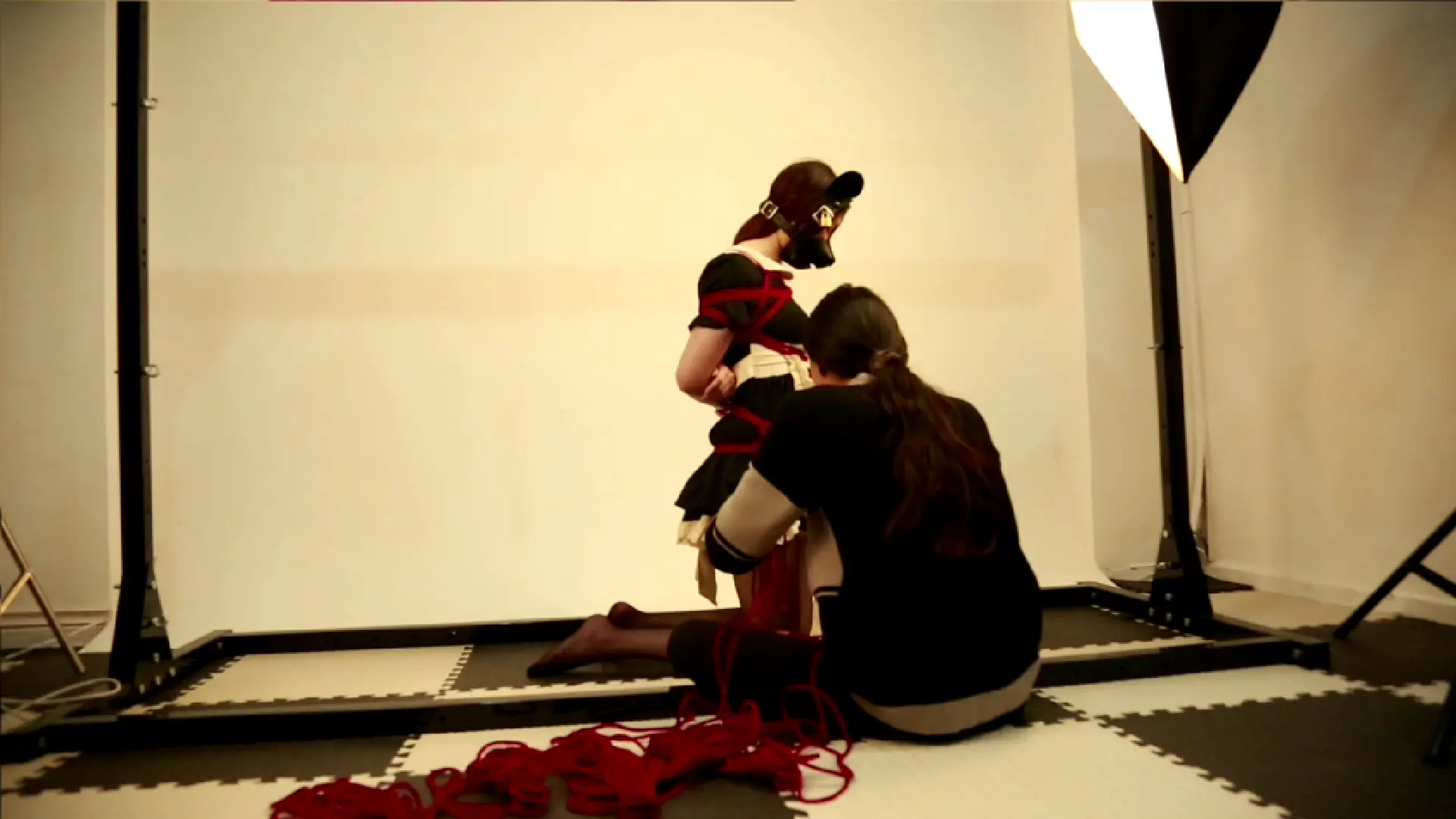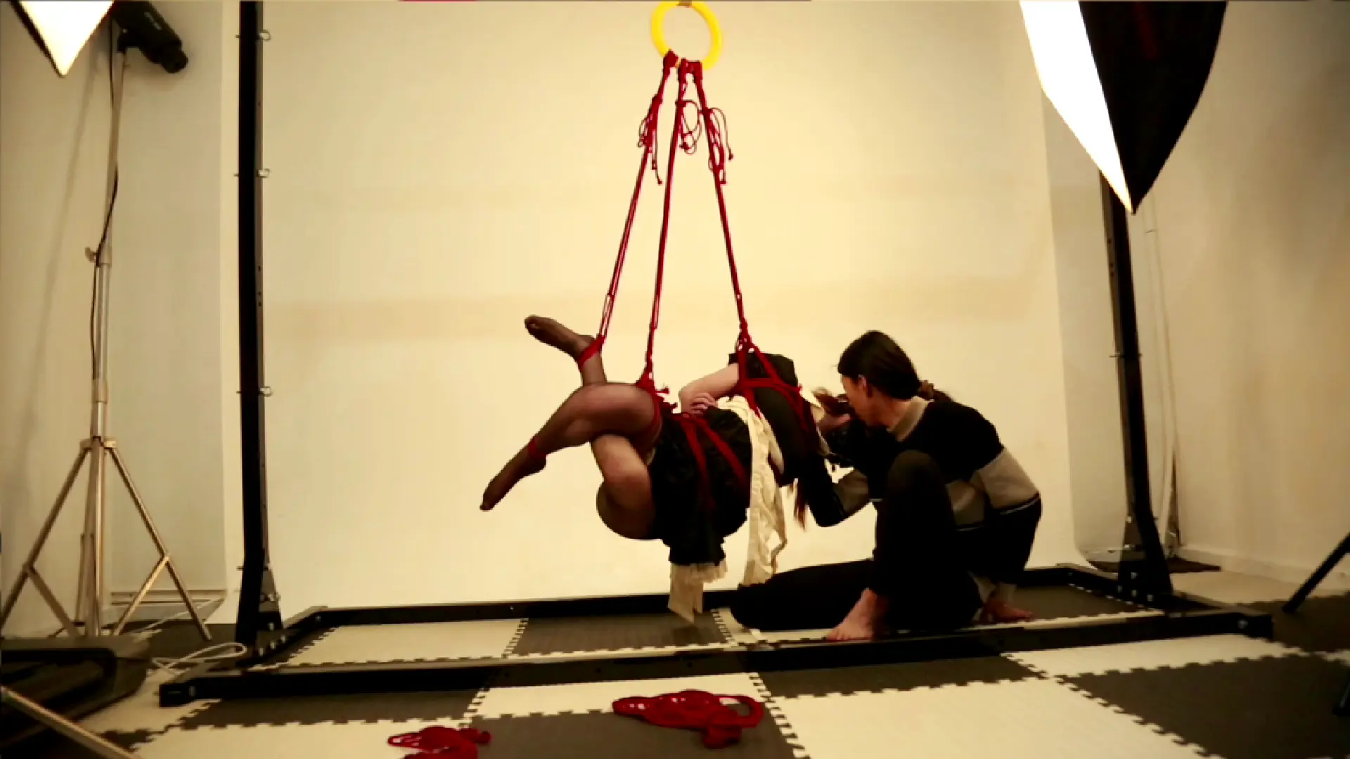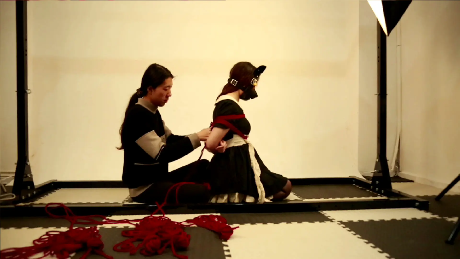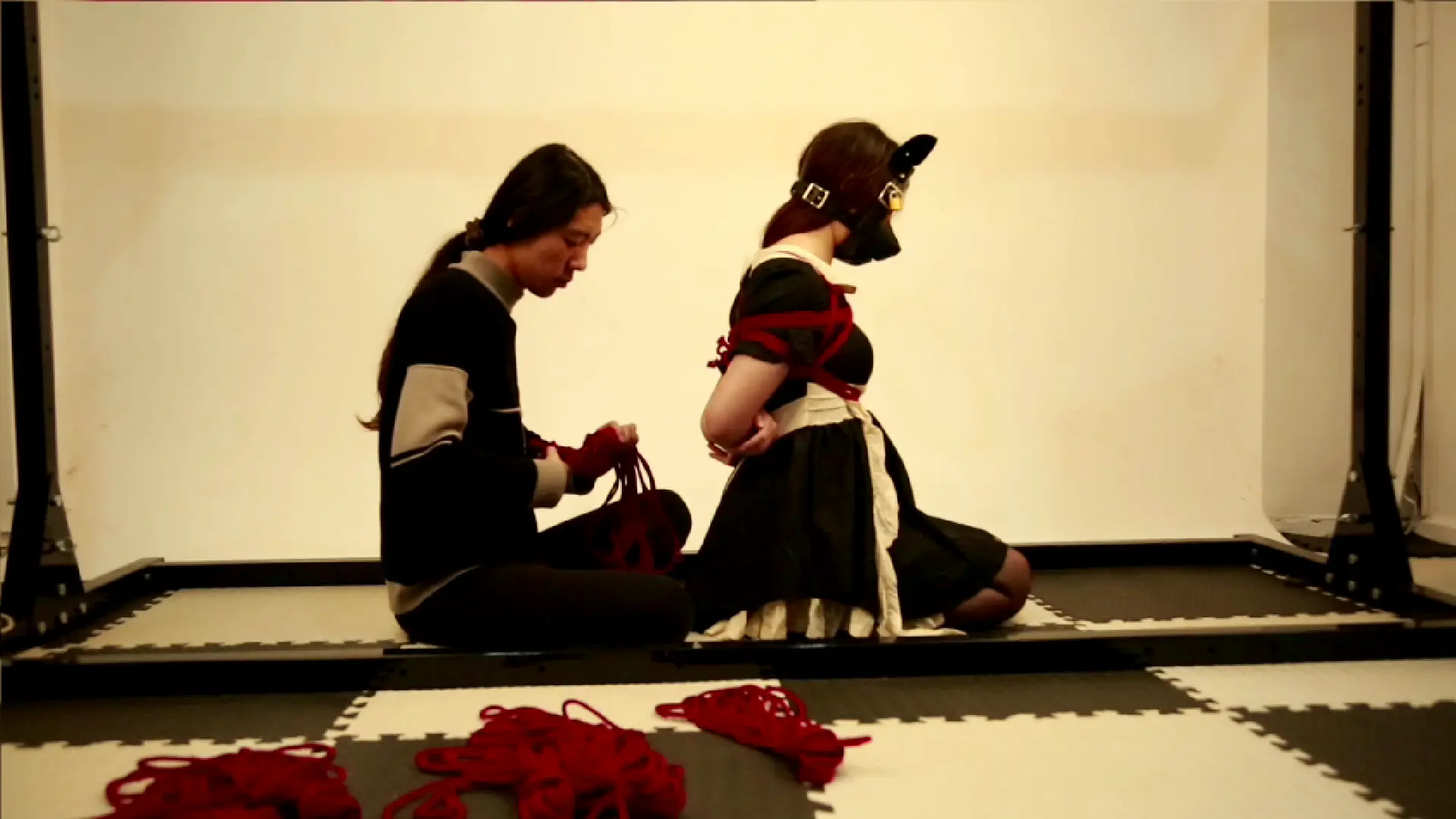 仆装的白色围裙随着她急促的呼吸起伏,而红绳已经缠绕到她手肘处。窗外一道闪电劈过,照亮了藏书室角落里无数双眼睛——那些肖像画中的祖先们似乎都在注视着这个被红绳选中的女孩。