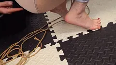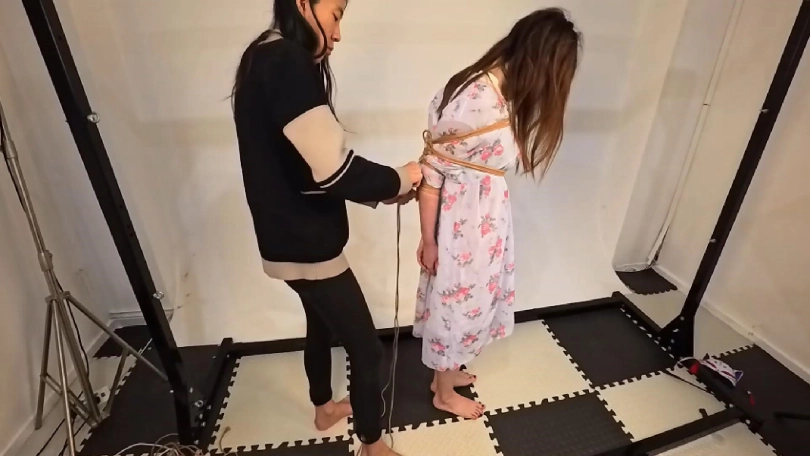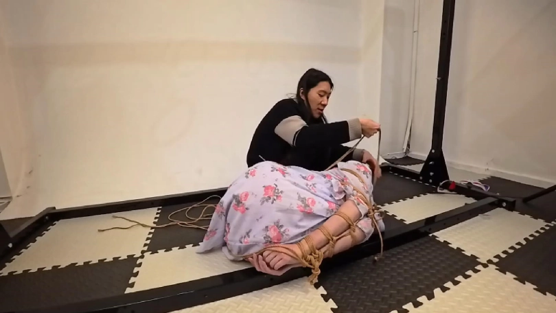 满的弓,脚趾在鞋里蜷成五颗苍白的卵石,冷汗沿着胫骨流进袜口,却不敢颤抖——颤抖会让重心偏移,偏移就是又一次收紧。齿轨已经嵌进腰窝,留下一排月牙形的红印,像月亮在偷偷拓印她正在流逝的呼吸。忽然,一阵风掠过废弃的温室,带来远处铁门的