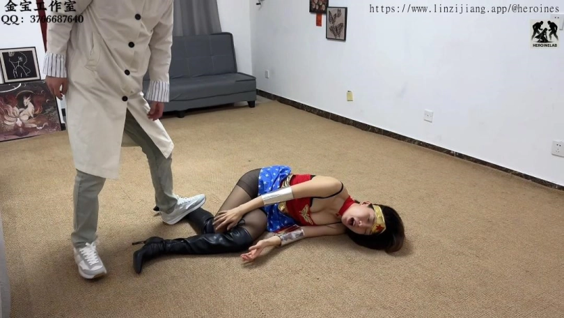最终决战,女侠已极度虚弱,拳脚无力,连过肩摔都使不出,被机器人连续重击腹部、腰部,掰腿,惨叫翻滚。随后被按在墙上掏裆猥亵,羞愤高潮,地上留下水迹。机器人嘲笑她“居然高潮了”,并透露陈逸死前还在呼唤她的名字。女侠愤怒至极,强行扔出头环,却被轻松接住踩碎,反噬让她痛不欲生。