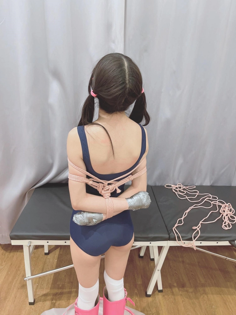少女想要挣扎,但是不但身体被日式+M腿捆绑着,就连小拳头都被胶带缠绕了起来,任凭少女怎么哭叫都没用,只能屈辱地张开双腿任人玩弄。仔细一看,少女的下面还塞着一个硕大的Td~