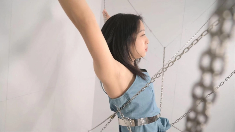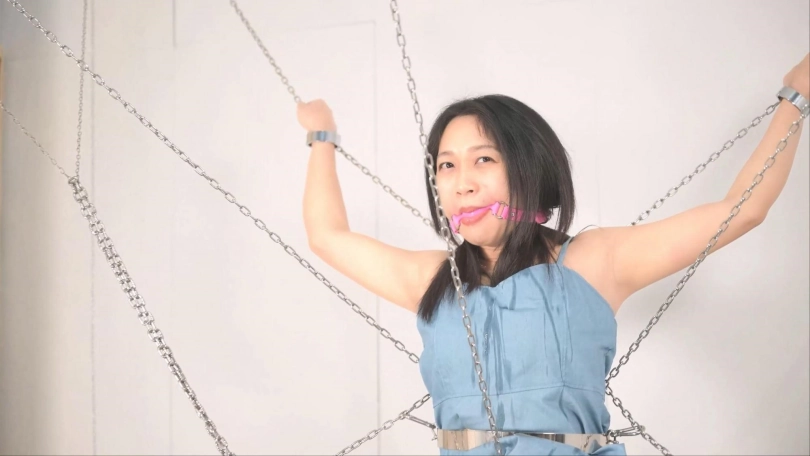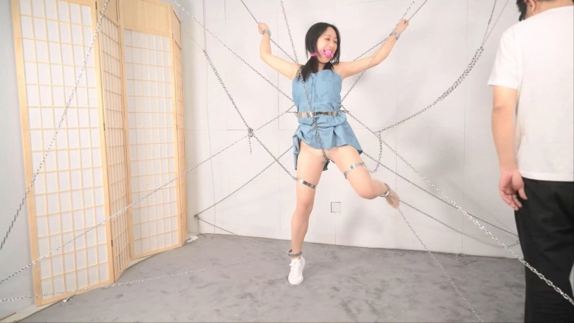 搭建这个铁链阵可是花费了不少功夫,当然不能白白浪费,要让妹子好好体验,这次正好是沐小雨接受铁链洗礼,跟她玩特别热闹有意思,沐小雨每次还会观察用的啥工具惩罚,就喜欢看她见到工具时的惊恐、拒绝和无奈。这次先给她放置个半小时好好体验铁链镣铐还有大腿铐固定,以及股链的深深拉扯。惩罚工具增加了戒尺,最后的筋膜枪可以消耗完她最后那点力气,斜躺在铁链网上慢慢体味这痛并快乐的经历。