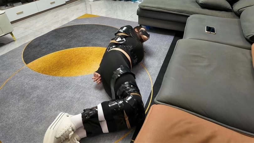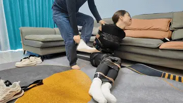 瑜伽美女茜茜在家玩手机,被入室歹徒强制捆绑,胶带堵嘴,翻完财务不算,又脱下茜想穿的耐克白袜,用茜茜自己穿的白袜硬塞到西茜嘴里,把茜茜嘴巴撑的鼓鼓的,不放心,又用胶带缠好多圈,手臂直臂捆绑,然后外面有缠上胶带,腿也是,密密麻麻,任由茜茜在地上拼命挣扎,最后还不罢休,竟然脱下自己脚上穿的白袜,捏着茜茜的鼻子,强行塞到茜茜嘴里,胶带封好,带上眼罩,扬长而去,留下茜茜在地上苦苦挣扎