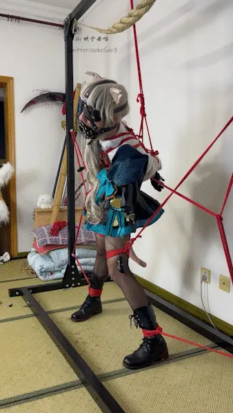 查看完整版本: 【坎喵】原神cos-琳妮特强制分腿+后手直臂吊缚强制罚站+强高+长时放置+脱缚失败