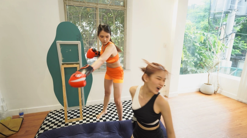 Rose (White) vs Julie (Orange) fights each other in a boxing match. Whoever scores 3 knockouts first will win. Rose gets the first 2 KOs but Julie makes a comeback. Rose after getting 2 devastating KOs from Julie has lost a lot of stamina and she is easily beaten by Julie. Julie wins but she is not letting Rose get away that easily. Julie starts beating on the poor Rose`s lifeless body and finishes her with a devastate knockout!