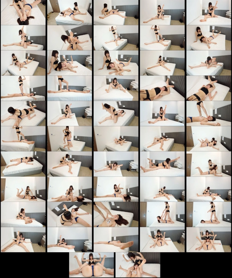 June (Black Underwear) completely destroyed May with different wrestling move. After each knockout. June pinned May with a single leghook pin and humiliate May with some foot in the face victory pose.