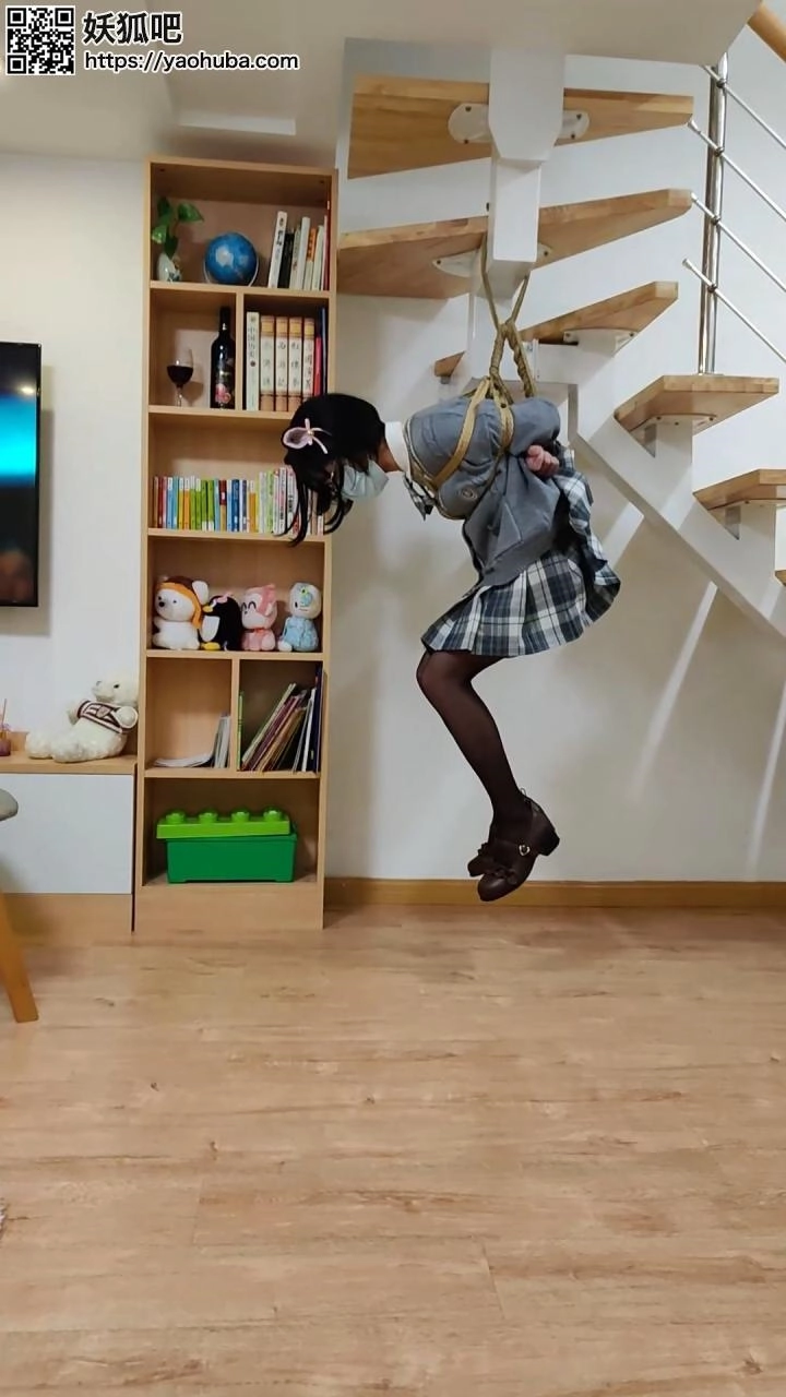 这次是黑丝JK悬吊~前半段是单纯悬吊,后半段是电击~